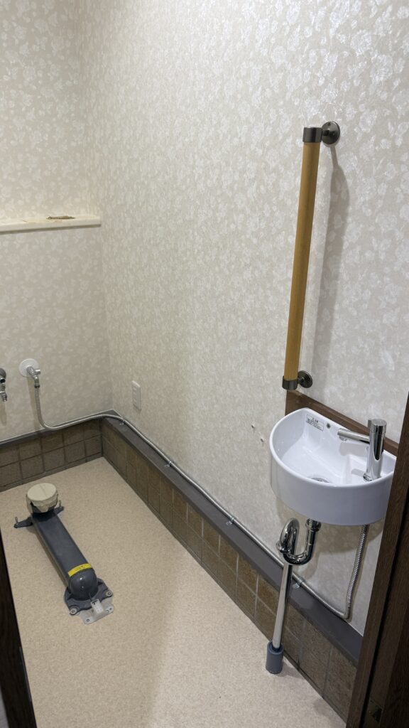 ↓手洗い器を設置しました。トイレの両サイドに手すりも設置しました。